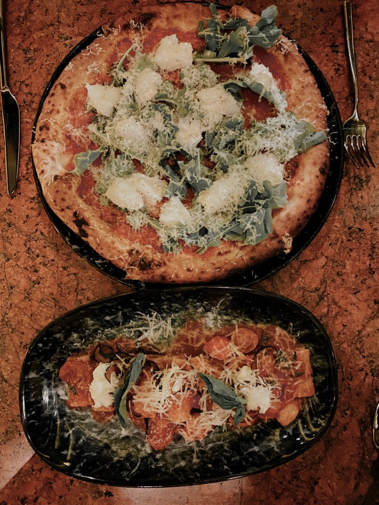 Finally, the fourth place we loved was Ardea (An Italian steakhouse). With Italian being my go-to choice, I was excited to see what they offered. As an appetizer, we went for a charcuterie board with three cheese selections. It also featured some honey, strawberry jam, and multiple bread options. For an appetizer to the appetizer, we were first delighted with cheese based croissants, cherry dipped cheese lollipops, hummus, and seasoned crackers. As a main course, we split the Liguroi Rigatoni and Tomato Sauce and Fresh Burrata Pizza. On the other hand, this restaurant is mostly known for their array steak choices. I’ll need to go back and try it one day! An important aspect to highlight, with any restaurant that required a reservation, our wonderful Local Ambassador booked everything for us. This truly made the overall experience stress-free!
